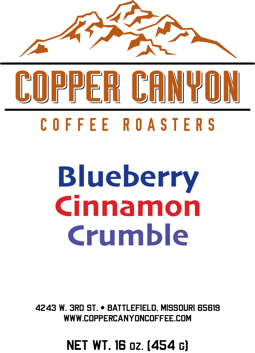 Copper Canyon's Blueberry Cinnamon Crumble Flavored Coffee is available in a 16oz bag, whole bean or ground.