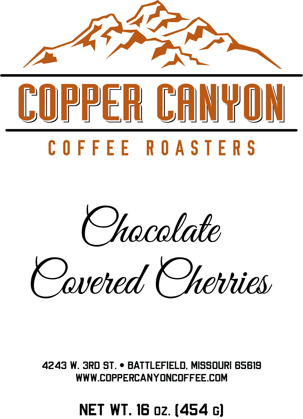 Copper Canyon's Chocolate Covered Cherries Flavored Coffee is available in a 16oz bag, whole bean or ground.