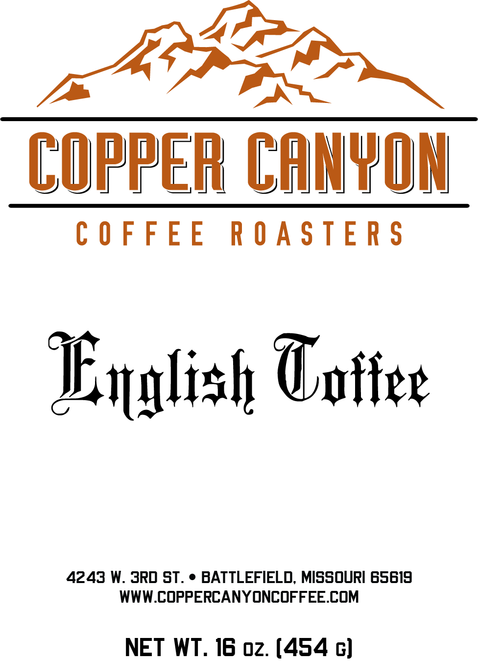 Copper Canyon's English Toffee Flavored Coffee is available in a 16oz bag, whole bean or ground.