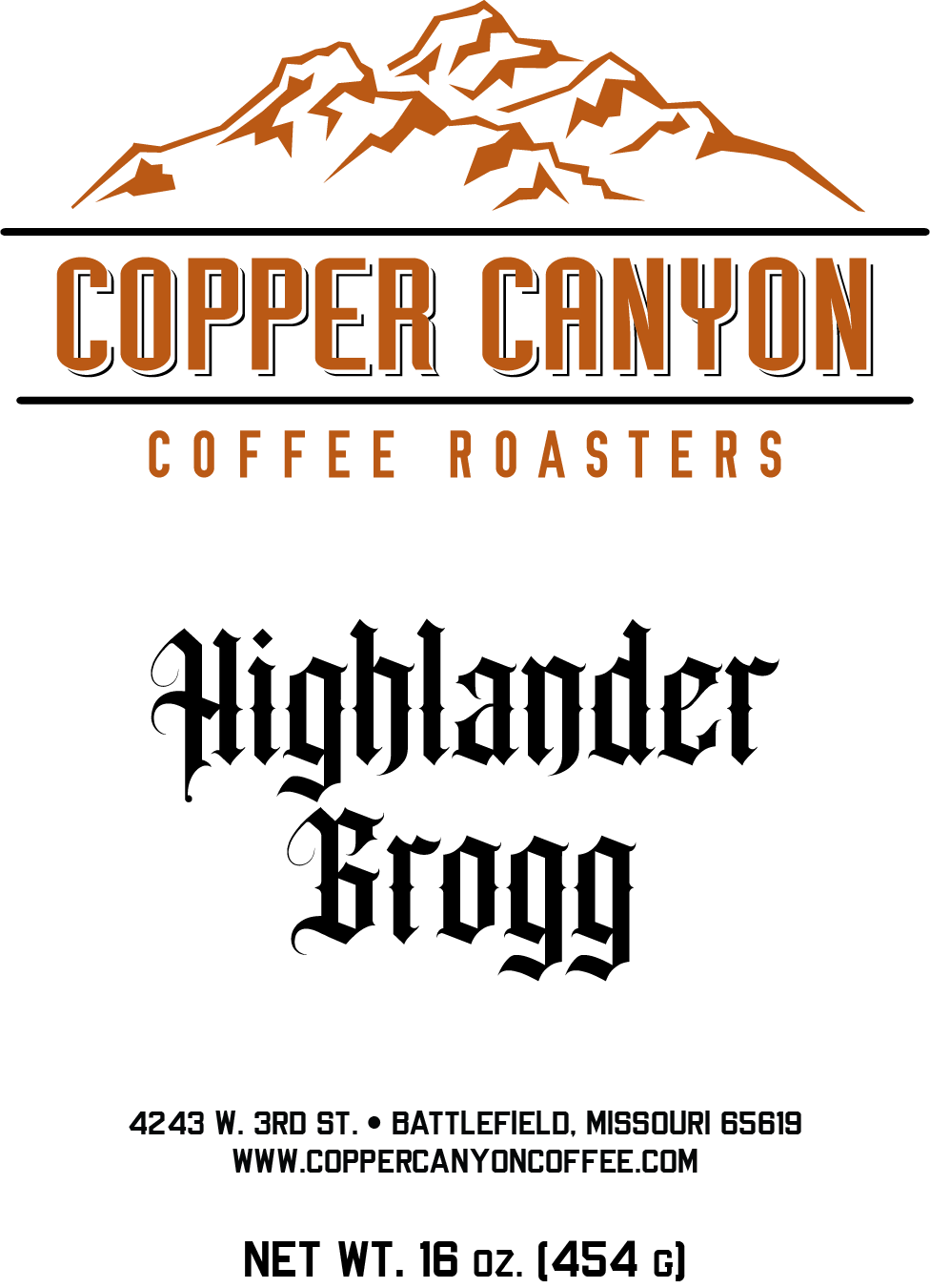 Copper Canyon's Highlander Grogg Flavored Coffee is available in a 16oz bag, whole bean or ground.