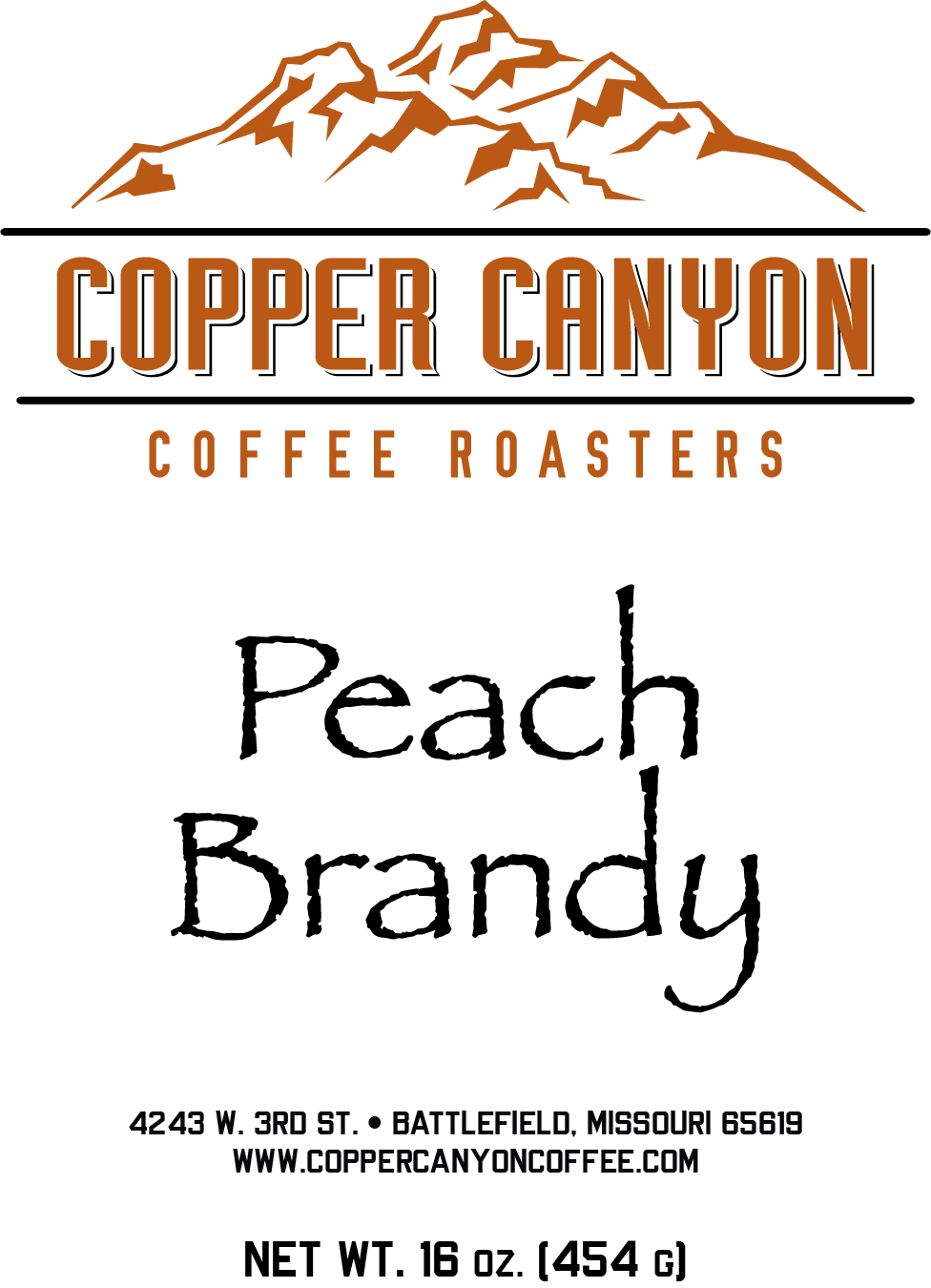 Copper Canyon's Peach Brandy Flavored Coffee is available in a 16oz bag, whole bean or ground.