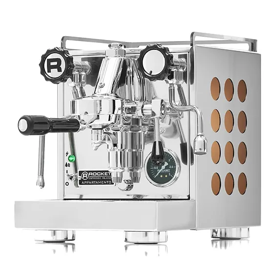 The Appartamento proves that good things come in small packages. A combination of classic espresso machine manufacturing, engineering optimizations, and modern design cues; the Appartamento's form factor shrinks every dimension except for quality. The Appartamento's E61 group and heat-exchange boiler offer a long service life and near-universal repair support, ensuring years of excellent coffee in your own home.
