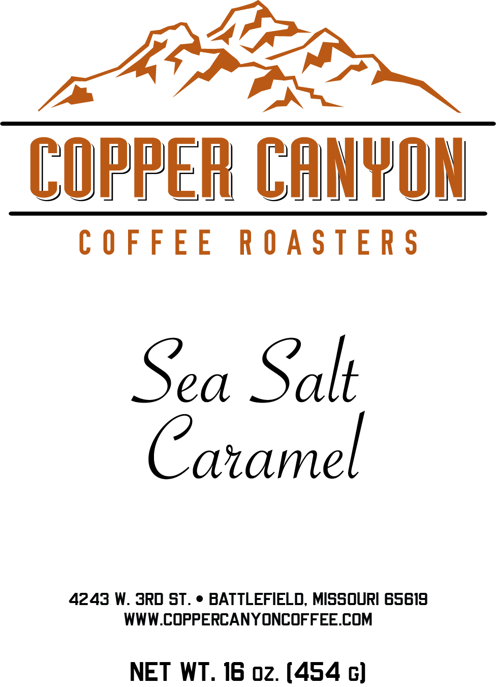Copper Canyon's Sea Salt Caramel Flavored Coffee is available in a 16oz bag, whole bean or ground.