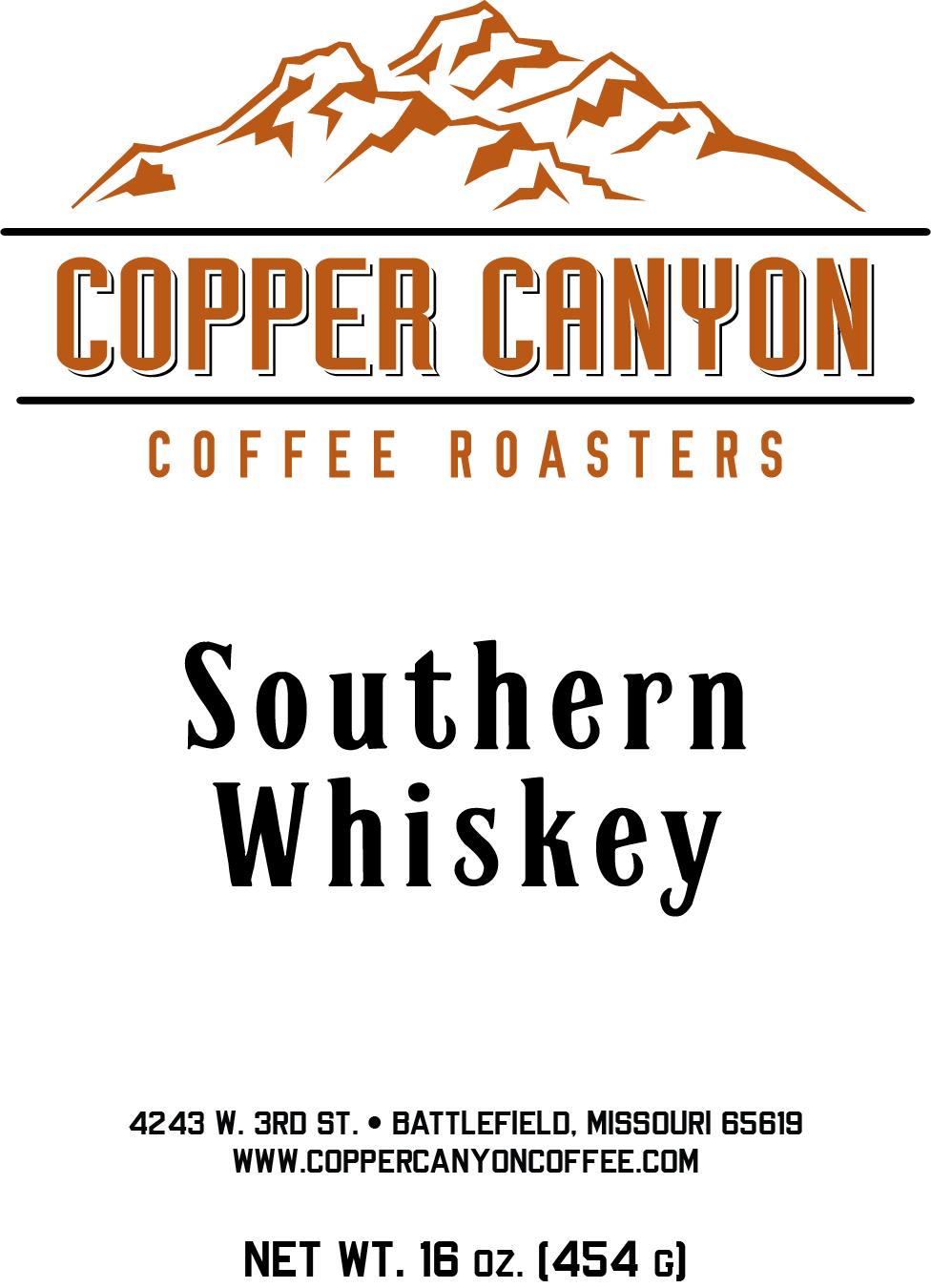 Copper Canyon's Southern Whiskey Flavored Coffee is available in a 16oz bag, whole bean or ground.